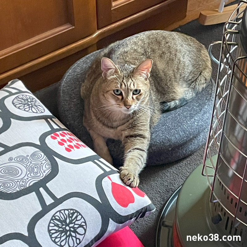 はちこちゃんのお気に入りの座椅子(きじおちゃんの爪とぎ)を