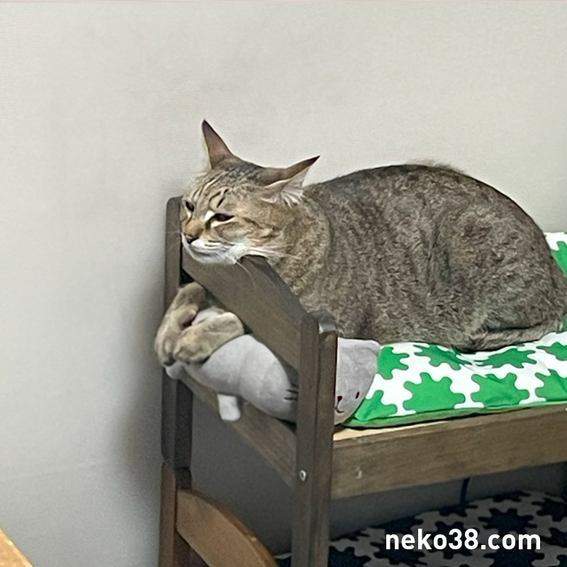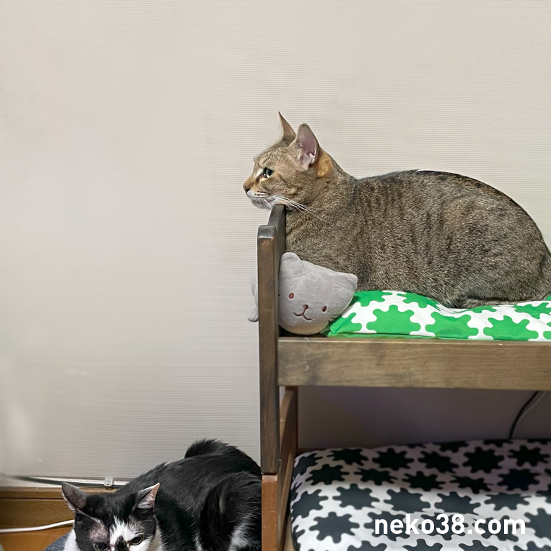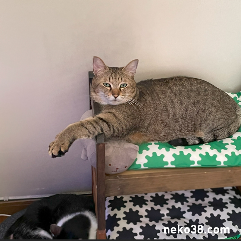 場所を横取りした挙句、ねこさんのあごのせスタイルをまねてみるきじお氏