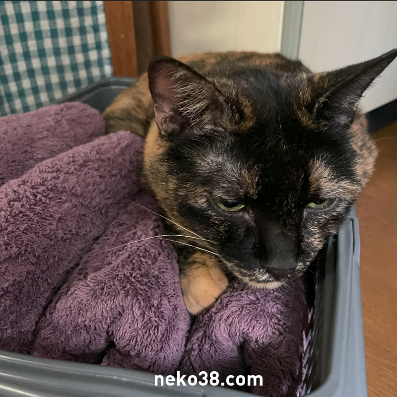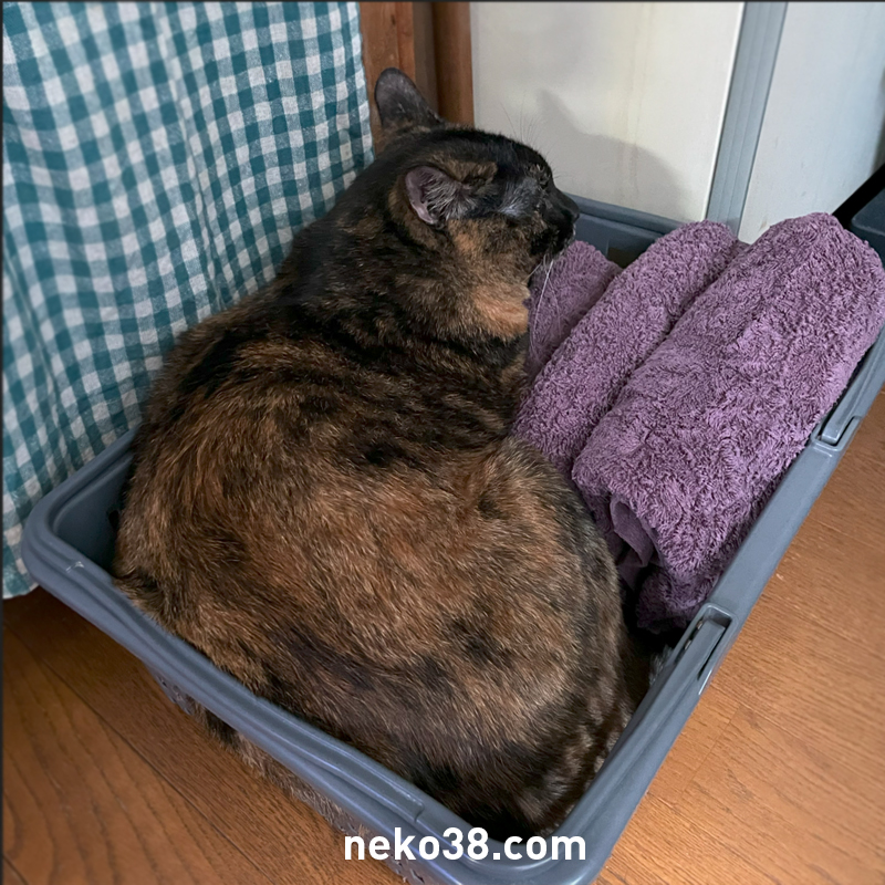 洗い立てのタオルの心地良さに気づいてしまったねこさん