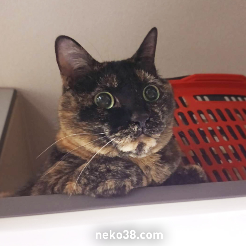 ねこさんは冷蔵庫の上でないとくつろげない。