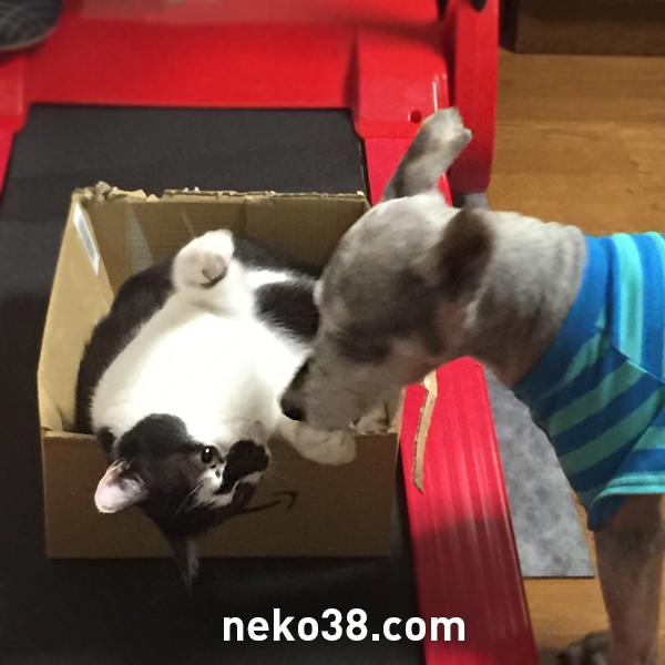 ゆったりサイズの箱ゲットのはちこちゃんである。
