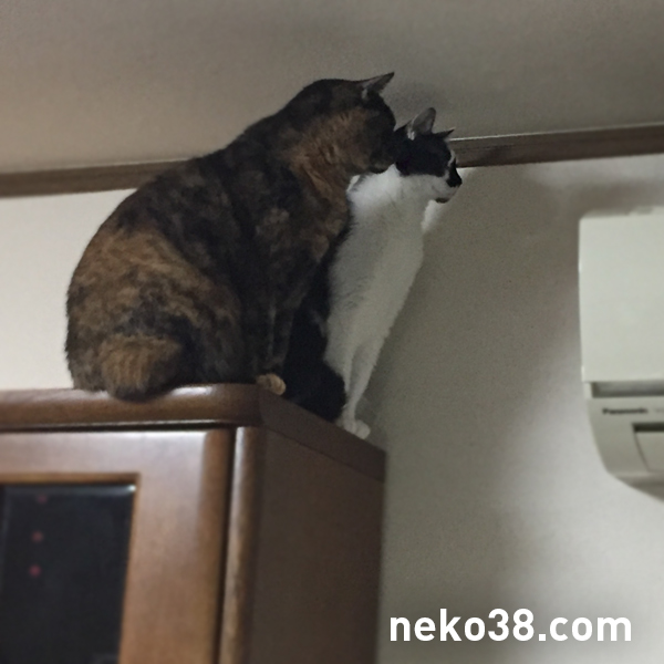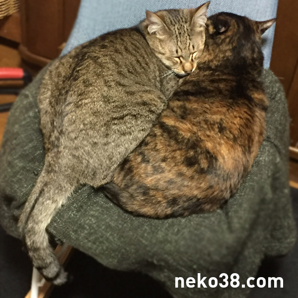 ねこさんがくつろいでいるところに、無理やり押しかけるきじお氏。