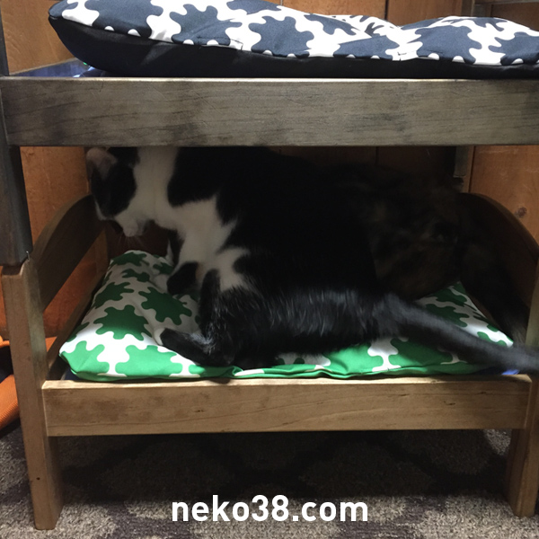 別々の部屋に置いてあったドールベッドを合体して置いてみたのである。