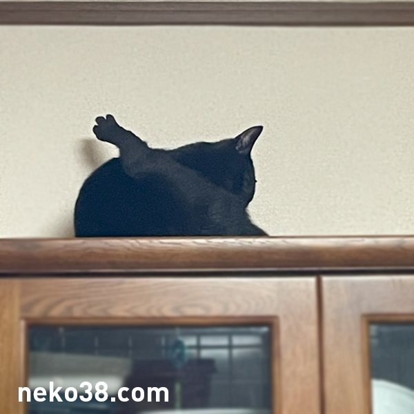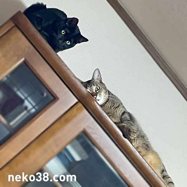 食器棚の上が人気スポットになり、きじお&やまこのお気に入りであるが、