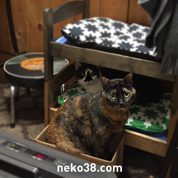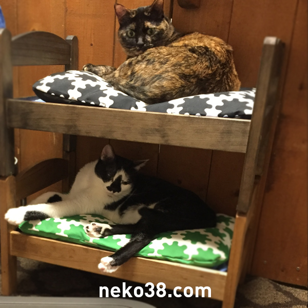 すっかり人気の2段ベッドであるが、一等地ははちこちゃんが占拠。