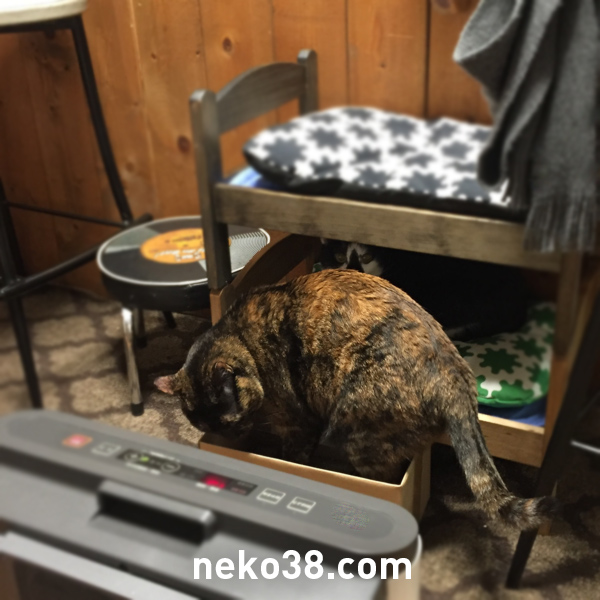 はちこちゃんにあげようと思った段ボールになぜかねこさんが侵入を試みる。