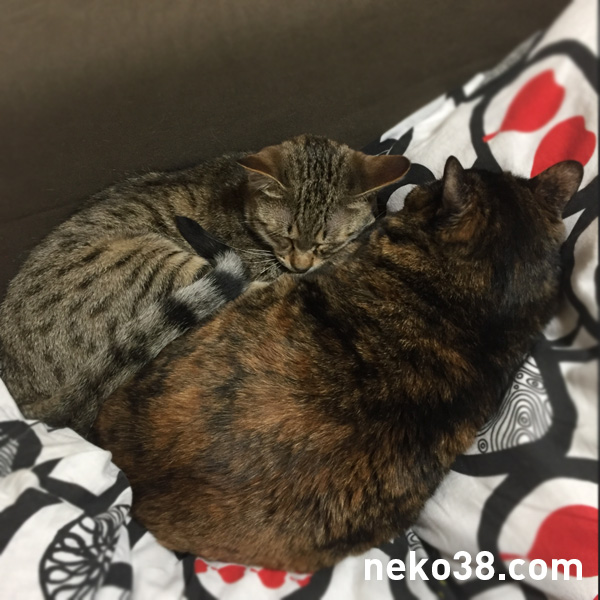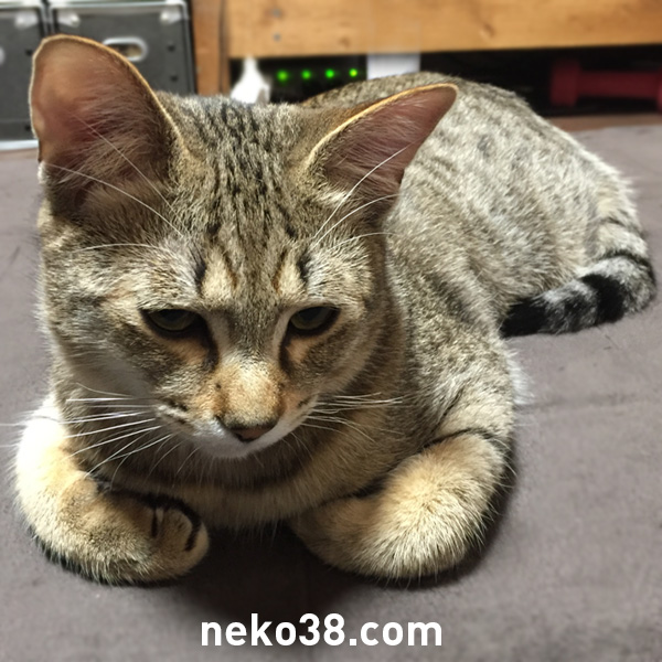 前脚が硬いのか、いまいち香箱にならないきじお氏。