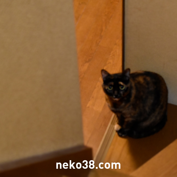 遠巻きに不穏な気配を察知しているねこさん。