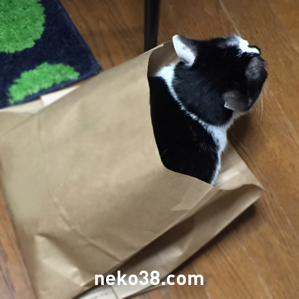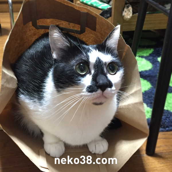 はちこちゃんが紙袋に入っている。