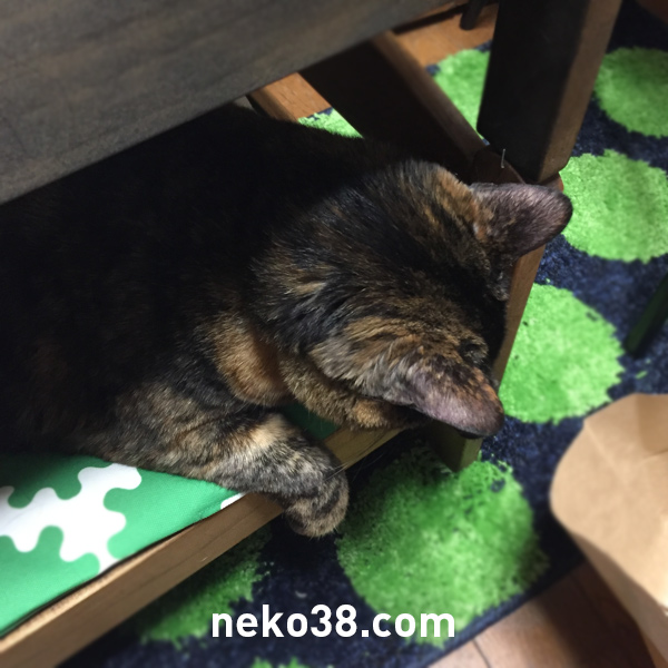 マットをボロボロにしてご満悦のはちこちゃん。