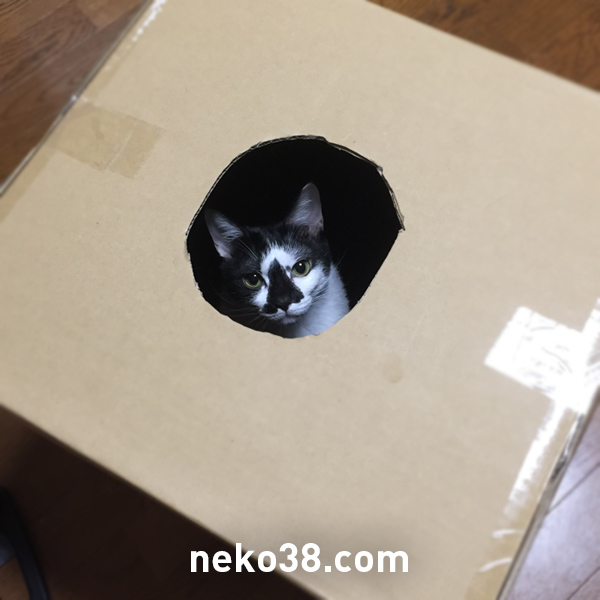 大きい段ボールがあったので、出入りしたくなりそうな穴を開けてみた。