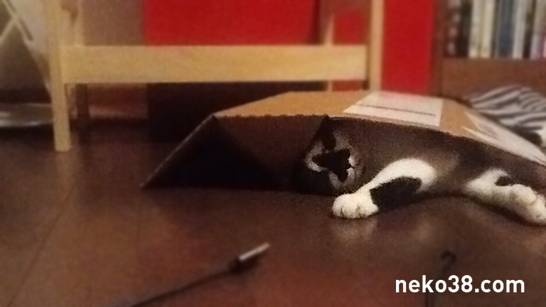 段ボールを被ってうっとりしている。