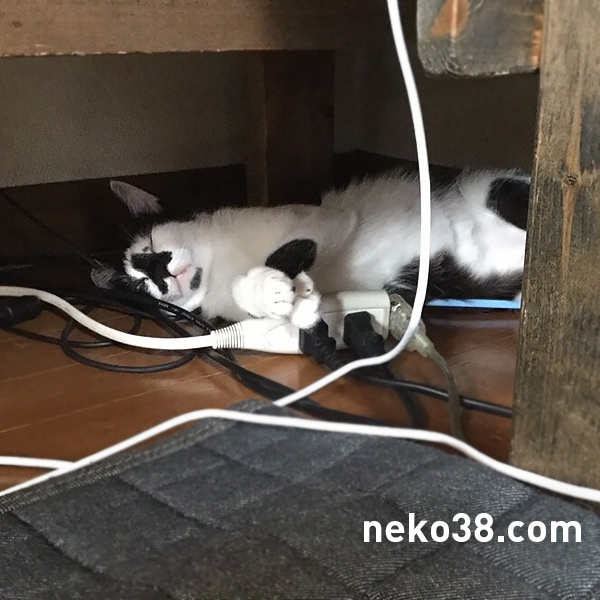 よく見るとドアストッパーの隙間に両脚が挟まっている。