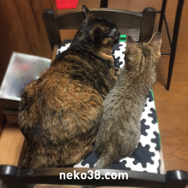 まるで仲良しに見えるが、きじおが押しかけてきたので、黙って耐えるねこさん。