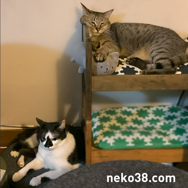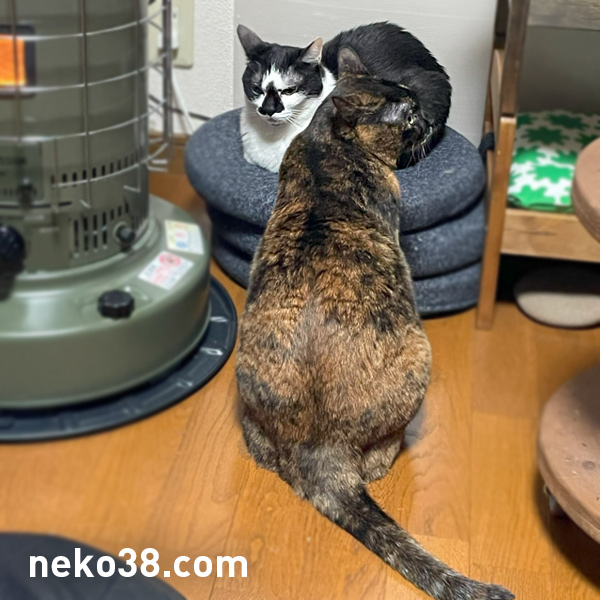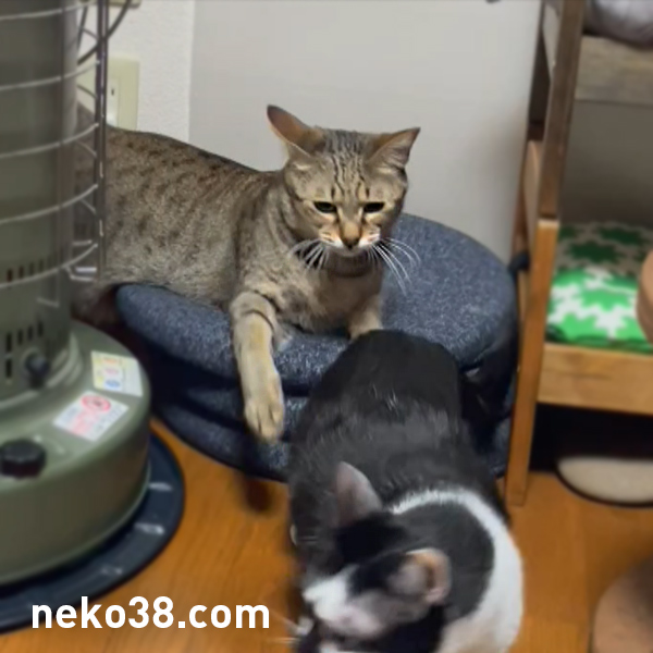 ねこさんごときに譲れない、はちこちゃんの強い意志。